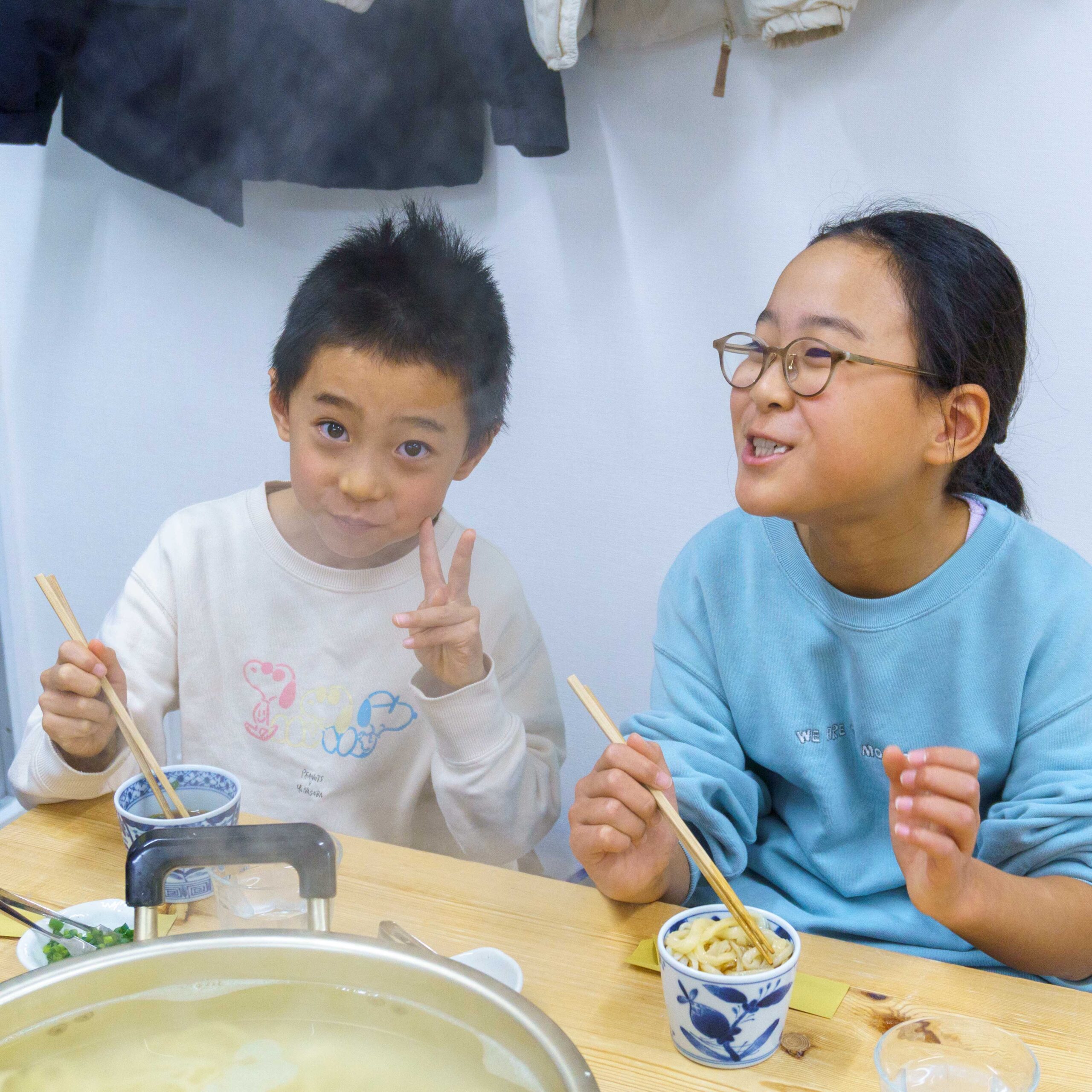 お友達グループで賑やかに!湯気もごちそう、笑顔あふれる手作りうどんランチ